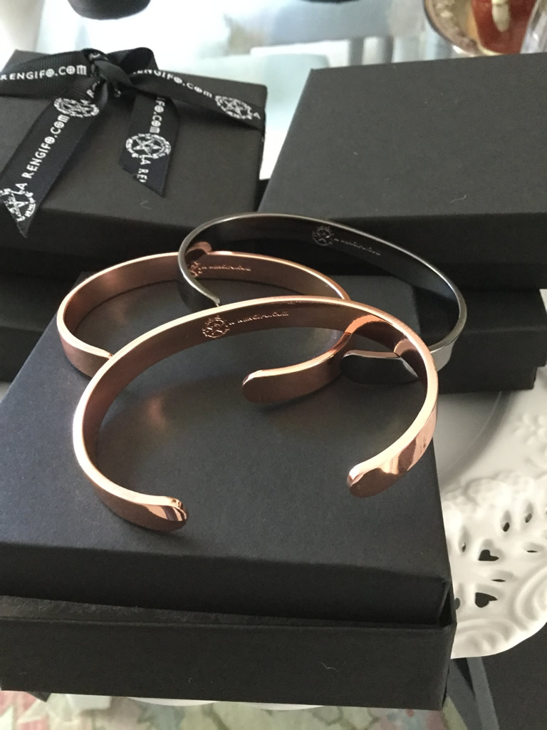 Estas pulseras fueron hechas con muchos años de experiencia, sacando al mercado algo que llegara al mundo. Algo que fuera mío, y así creé mis pulseras. Ellas son de cobre con seis imanes. Evitan la depresión, alivian los dolores y pueden sustituir los analgésicos. Ellas mismas te señalan cuando se acerca un problema. Cambian de color y ayudan a equilibrarte. Ayudan con la salud matando las células malas y te dan mucha suerte.